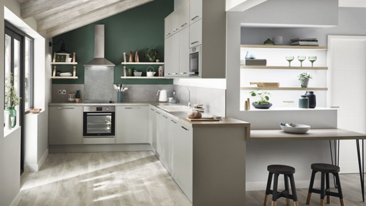 Không gian bếp của các căn hộ chung cư thường được thiết kế theo hình chữ U hoặc L, vậy nên bạn có thể đặt bồn rửa chén và bếp cùng một bên bức tường để có thêm nhiều không gian bố trí các vật dụng khác.