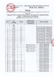 – Bản sao Thông báo số 234-2025/TB-APCT ngày 30 tháng 9 năm 2025 của Công ty TNHH An Phú Cần Thơ về khởi công xây dựng hạng mục công trình Chung cư nhà ở cao tầng tại dự án Đầu tư xây dựng nhà ở phường Thường Thạnh – An Phú Ecocity theo quy định tại điểm b khoản 3 Điều 24 Luật Kinh doanh bất động sản năm 2023;